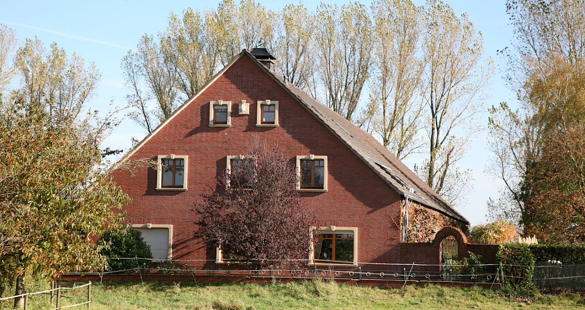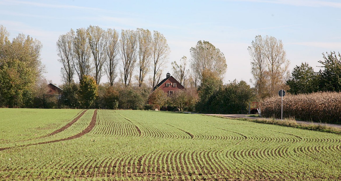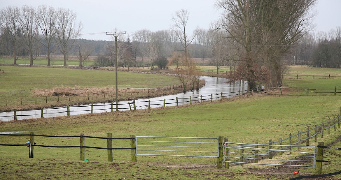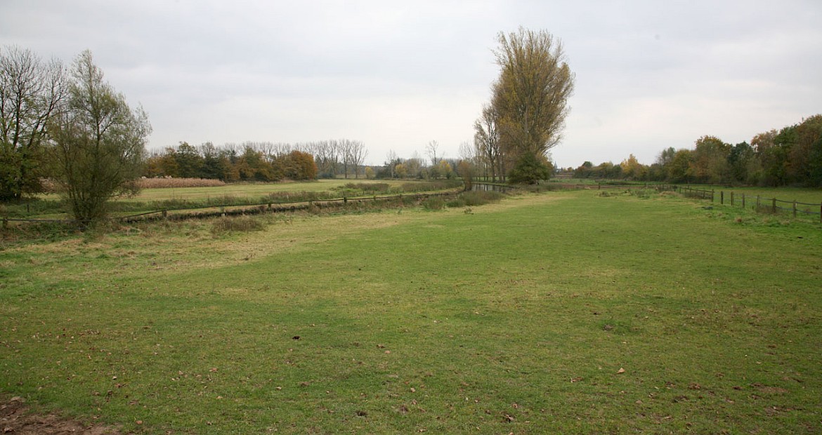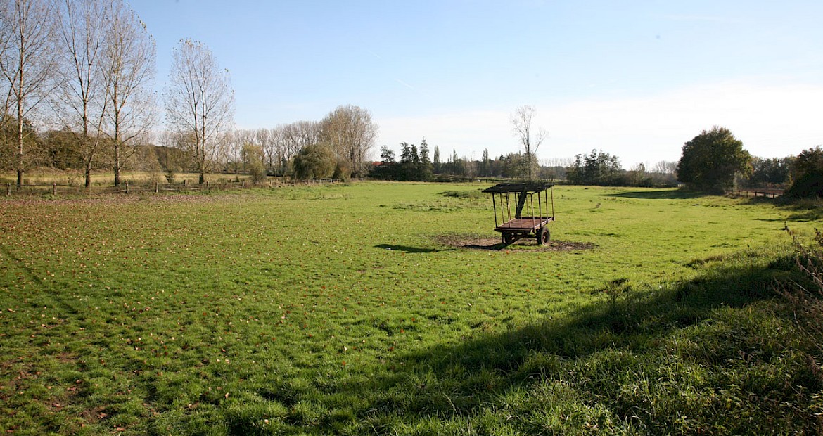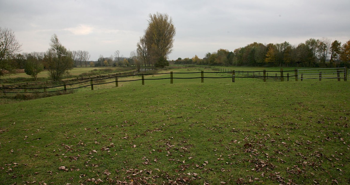 Die Weideflächen erstrecken sich südlich der Hofgebäude und liegen geschützt zwischen Bäumen und Sträuchern, sowie dem Fluß Niers.