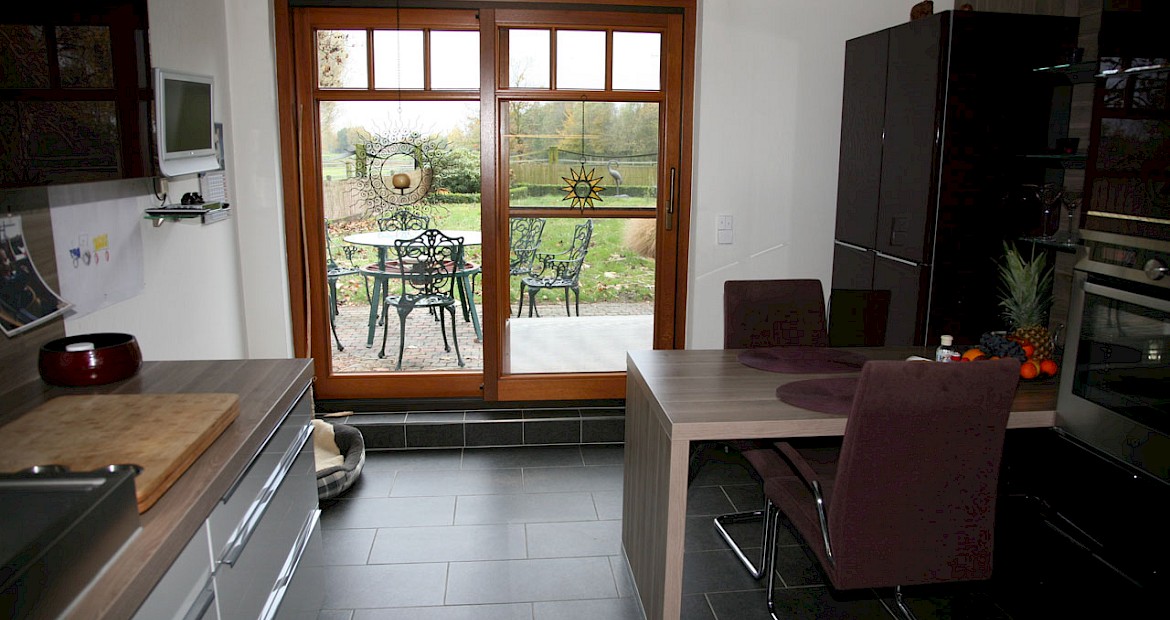 Die komfortable Fußbodenheizung wird von der Öl-Zentralheizung gespeist. Auch ein Kamin ist vorhanden. Die isolierverglasten Hartholz-Fenster sind 2006, 2003 und 1991 eingebaut worden und rundum mit Jalousien (Küche/Terrasse elektrisch) ausgestattet. Die Türen bestehen aus Vollholz (Eiche mit Bronzebeschlägen).