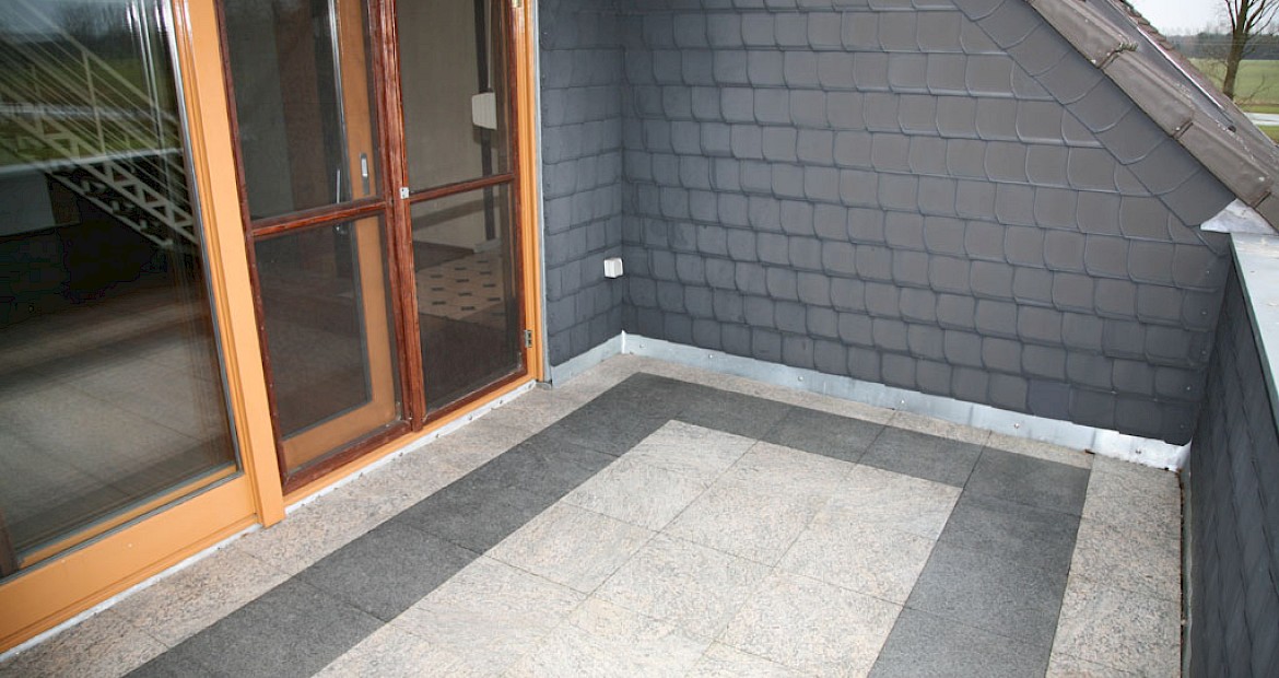 Die beeindruckend große und gemütliche Dachgeschosswohnung erstreckt sich über zwei Etagen, die durch eine innenliegende Treppe miteinander verbunden sind. Die Wohnfläche im Obergeschoss beträgt ca. 130 m². Diese Etage verfügt über einen großzügigen Wohn- und Essbereich mit einer offenen Küche, ein Schlafzimmer, ein Badezimmer, ein Abstellraum und ein Gäste-WC. Von der Loggia in Südlage hat man einen wunderschönen Blick auf die Niers mit angrenzenden Wiesen. Sie kann bei Bedarf mit einer Markise beschattet werden. Fliegengitter halten ungebetene Gäste fern.