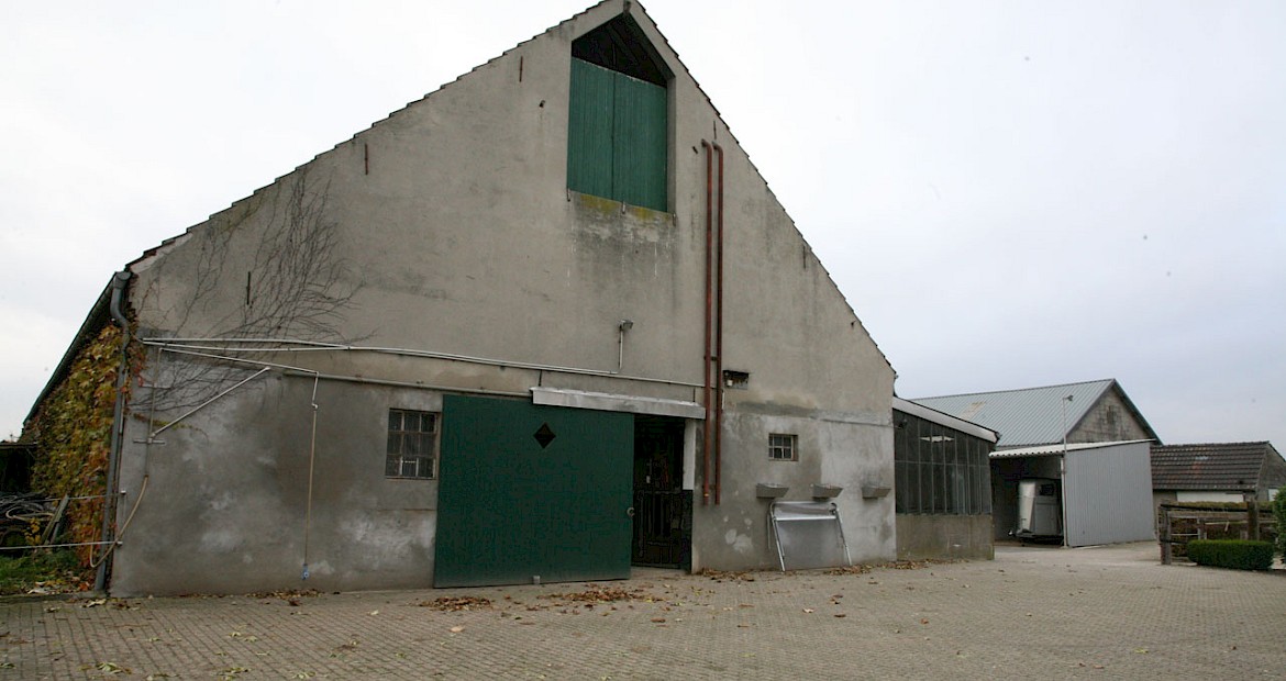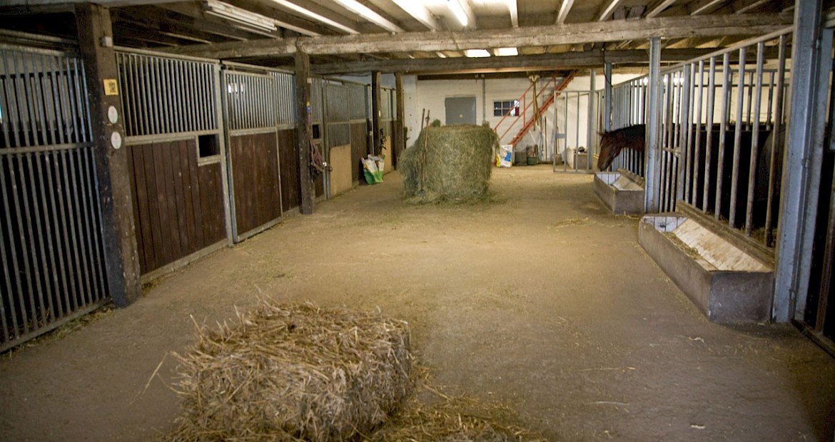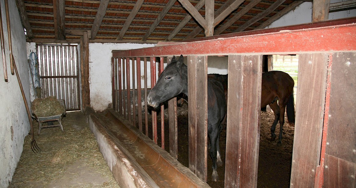 Der gemauerte Hengststall ist an die Reithalle angebaut.