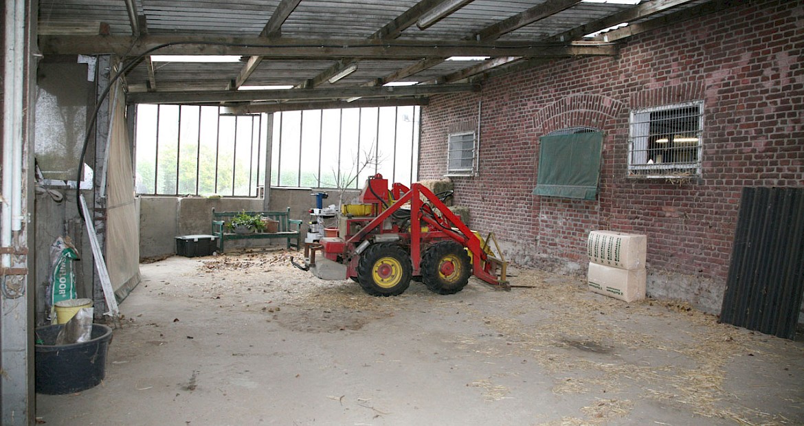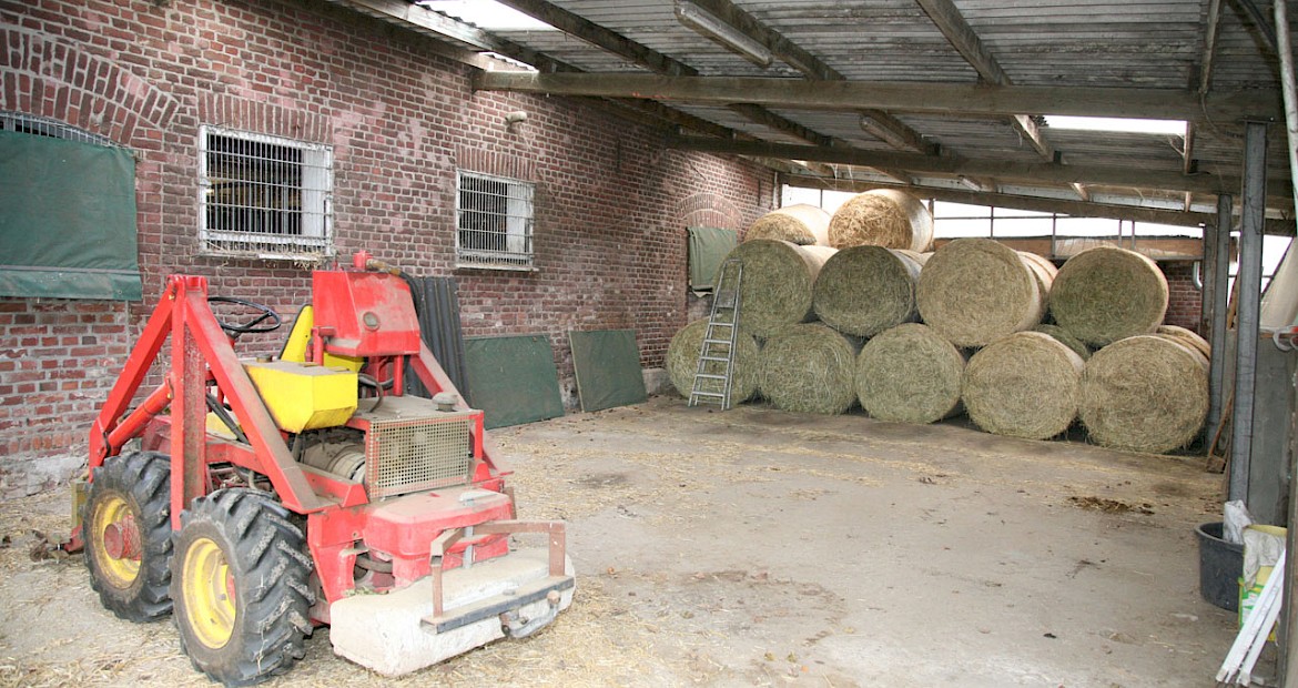 In einem überdachten Anbau an die Stallungen befindet sich das praktische Strohlager mit Fenstern und Lichteinfallabdeckung (6,80 m x 17 m, niedrigste Höhe: 3 m).