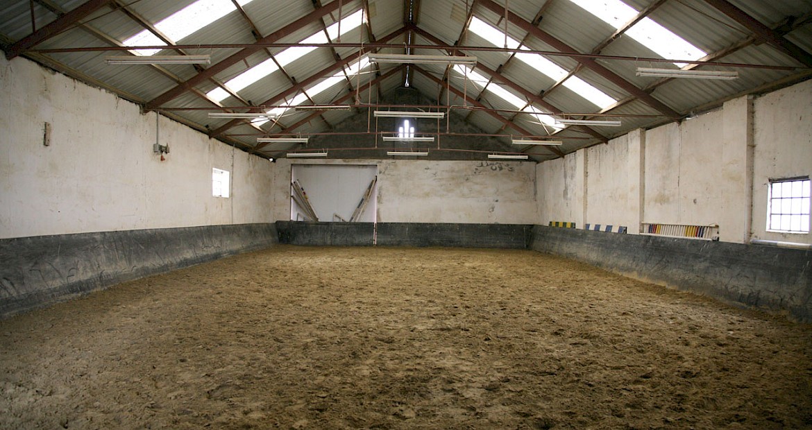 Die Reithalle (12,20 m x 26,85 m breit und 3,60 - 7,50 m hoch) ist gemauert, verfügt über einen Betonboden und ist von innen verputzt. Das Dach (inkl. Balken) ist ca. 10 Jahre alt. Auch die Elektrik ist vor ca. 10 Jahren erneuert worden. Hier sind Starkstrom-Anschluss, Lampen, und Lichtplatten für natürlichen Lichteinfall vorhanden.