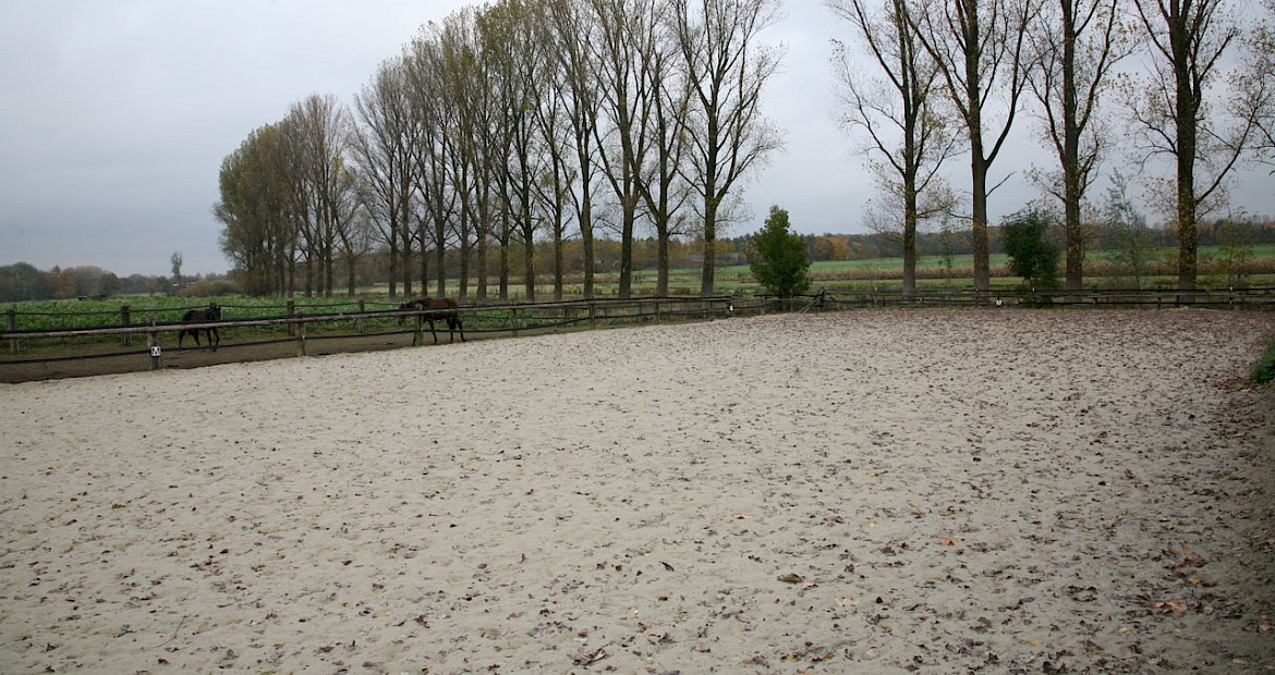 Der Reitplatz - 20 m x 40 m mit Kirchhellener Sand - liegt am malerischen Flußlauf.