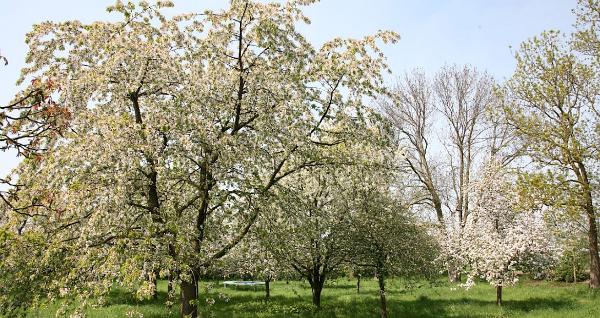 Im Obstgarten wurden um 1990 diverse Obstbäume gepflanzt (Apfel, Kirschen, Pflaumen, Birnen, Mirabellen,..). An der Grenze zum Obstgarten ist ein alter Baumbestand (u.a. Eschen) vorhanden.