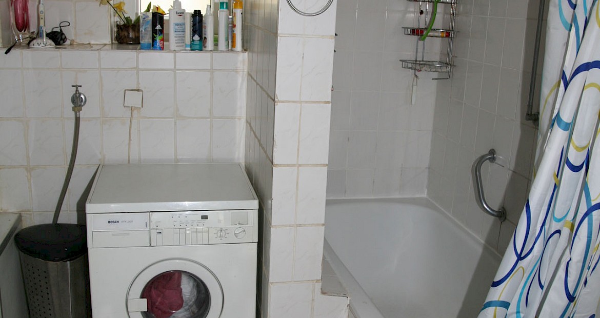 DG-Wohnung: 1 Wohnzimmer, 1 Küche (alternativ Arbeits- oder Ankleidezimmer), 1 Schlafzimmer und 1 Badezimmer.
