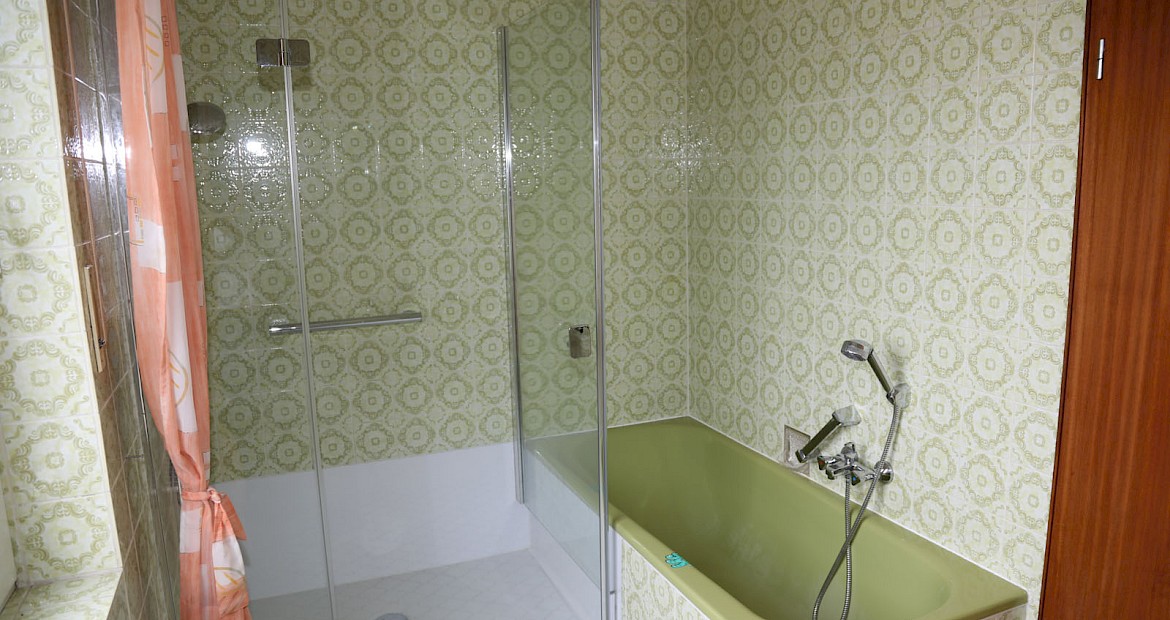 - 1 Badezimmer mit Fenster, Wanne, neuer Dusche und Doppelwaschbecken