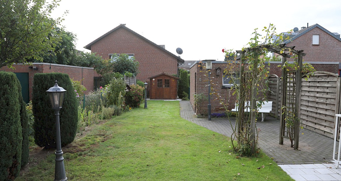 Der Garten ist gen Süd-Osten ausgerichtet, pflegeleicht angelegt, komplett eingezäunt und mit einem Gartenhaus ausgestattet.
