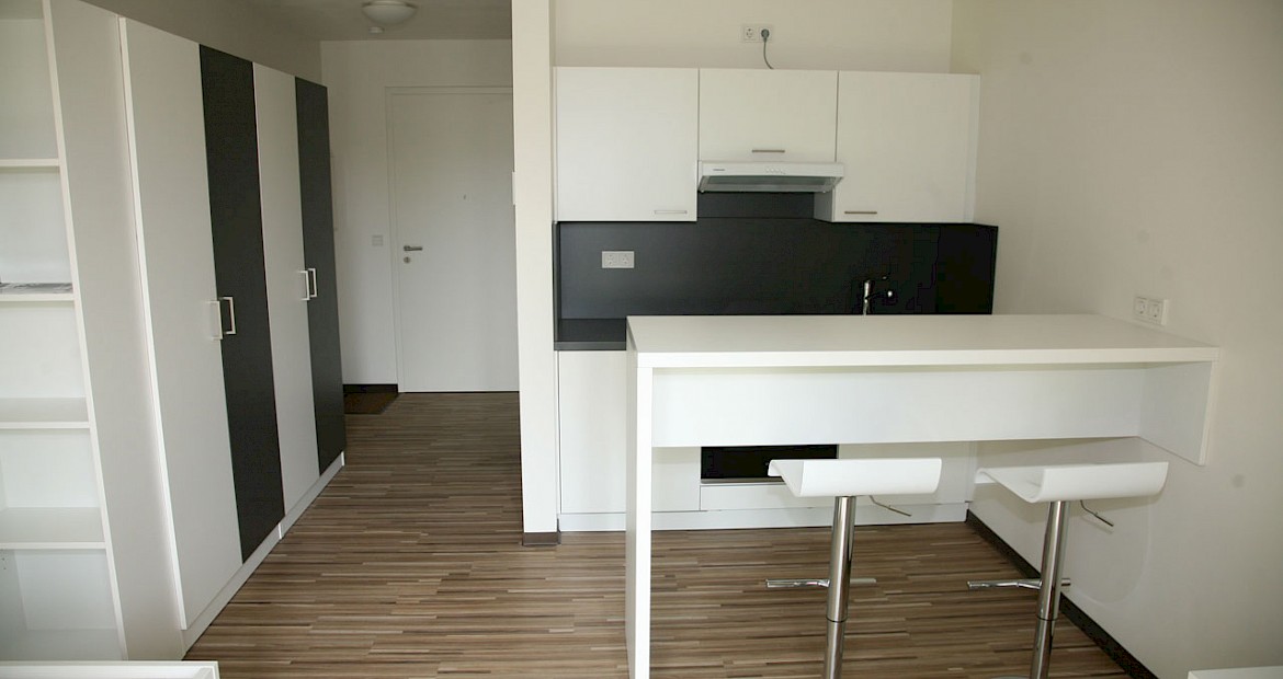 Nur wenige Schritte vom Hörsaal und der Innenstadt entfernt finden Sie das "Students Home“, dem neuen und perfekt -neben Hochschule und Innenstadt- gelegenen Apartmenthaus.Es bietet 45 Einzel- und 3 Doppelapartments.