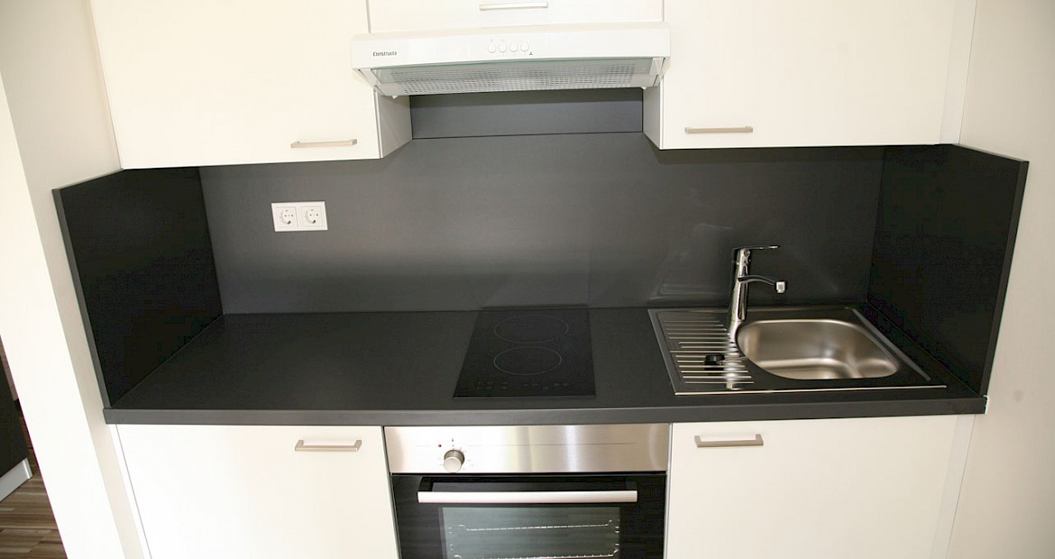 Die Einzelapartments sind in 1 Wohn- und Schlafraum mit offener Küche, 1 Badezimmer mit Dusche, WC, Waschtisch und einen Balkon unterteilt.