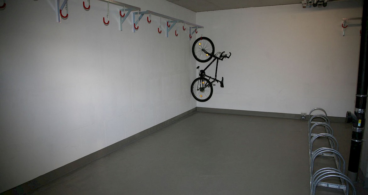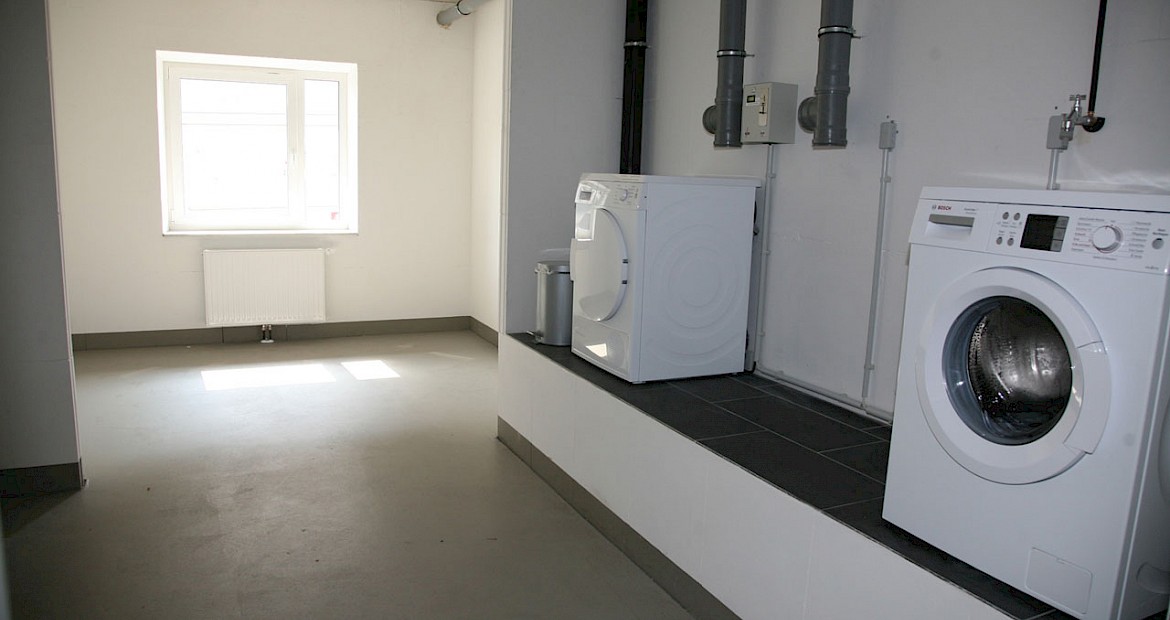 Im Erdgeschoss befinden sich – zur gemeinschaftlichen Nutzung – der Fahrradraum, sowie der Wasch- und Trockenraum inkl. Waschmaschinen und Wäschetrockner, die per Münzeinwurf betrieben werden können.