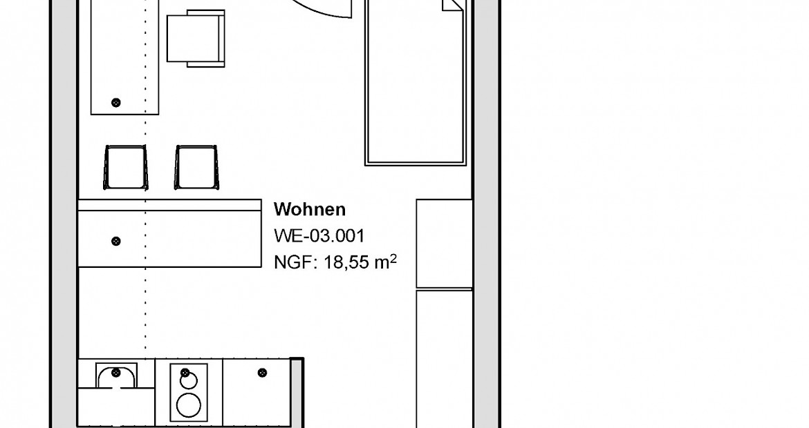 Diese 24 m² großen Apartments sind hochwertig ausgestattet, vollständig möbliert - inklusive Küchenzeile - und verfügen zusätzlich über einen sonnenverwöhnten Süd-Balkon. Sie liegen im 1.-3.Obergeschoss und sind komfortabel über einen Personenaufzug oder das Treppenhaus erreichbar.